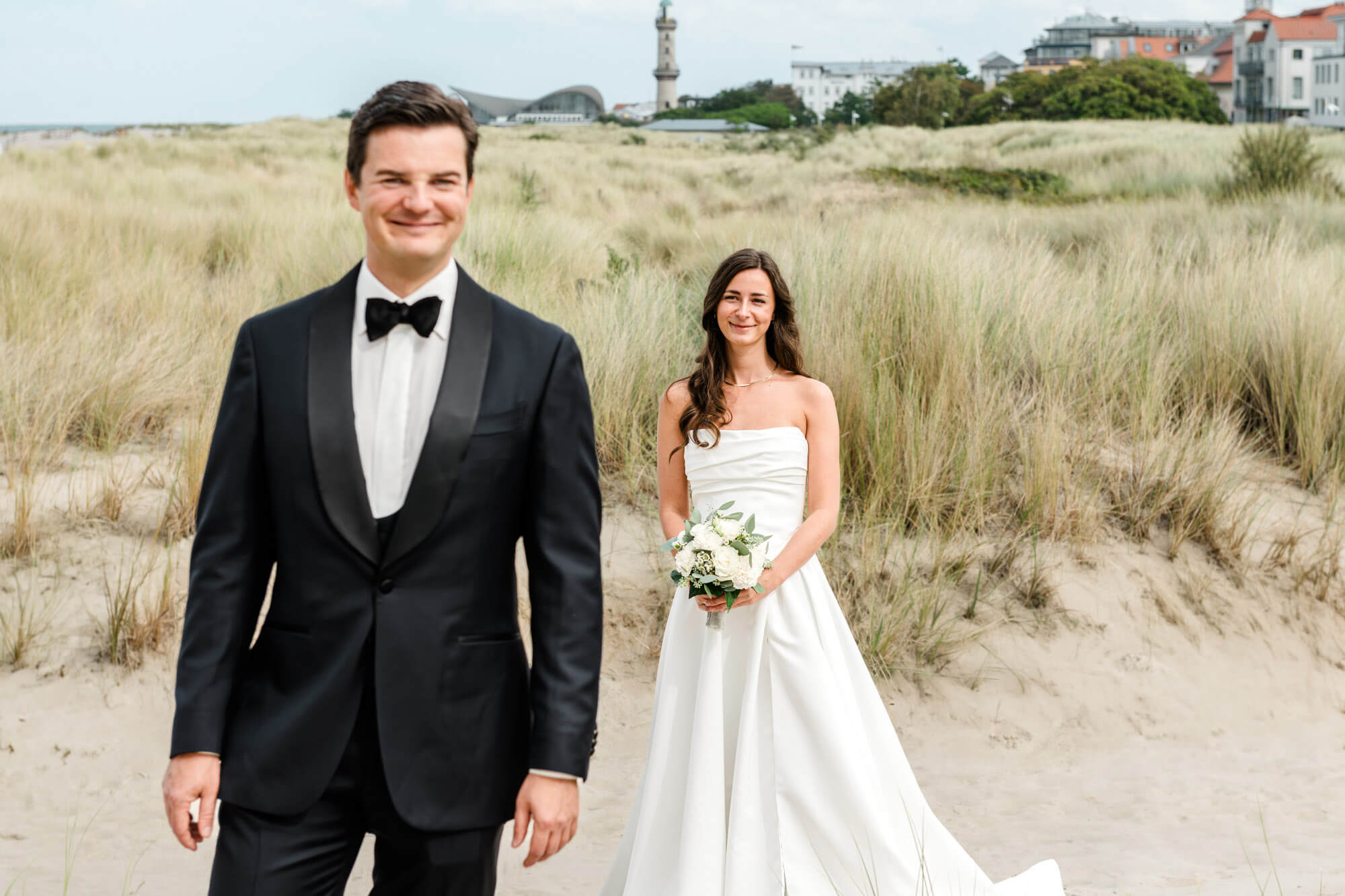 First Look & Paarshooting am Strand in Warnemünde – Hochzeitsfotos trotz vieler Besucher