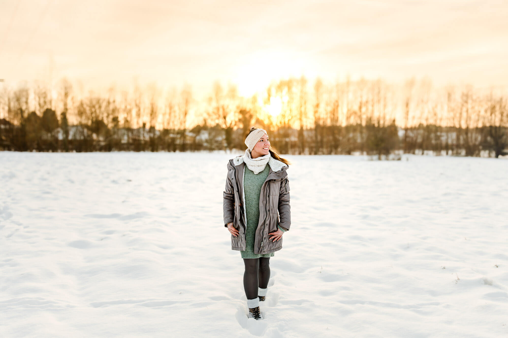 Zwischen den Paarbildern hat mein Mann noch Portraits von mir gemacht. Auch hier: Bewegung, Licht, Schnee. Laufen, springen, Schnee werfen. Keine statischen Posen, sondern Bilder, die sich leicht anfühlen und trotzdem klar komponiert sind.
